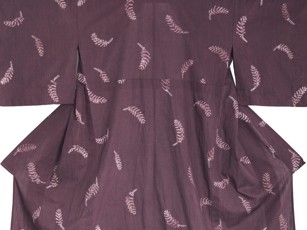 <suzusan>2025年春夏コレクション“PLAY“のシーズンで登場したおもちゃの積み木をインスピレーション源に作られた柄を浴衣に施しました。グラフィカルな絵羽柄ではまだら柄と同様に16枚もの型紙を制作し、輪郭を絵刷りした後に縫い締め、中心部分をカバーをして硬く絞るという技法。輪郭のわずかなゆらめきの中に人の手でしか作り出すことのできないあたたかさと、凛とした風通しの良い清々しさが感じられます。